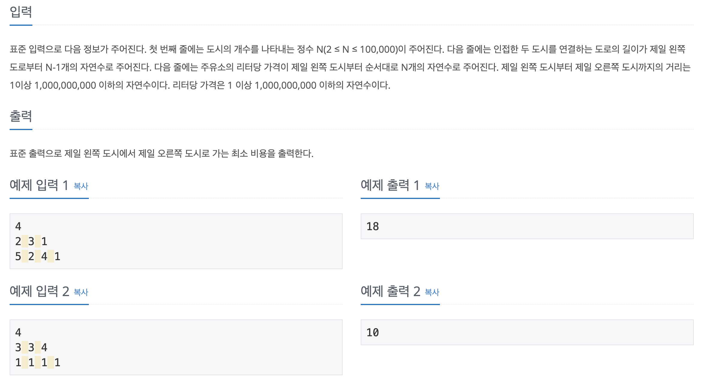 이번 주유소의 기름값보다 작은 주유소를 찾은 뒤 --- 1번