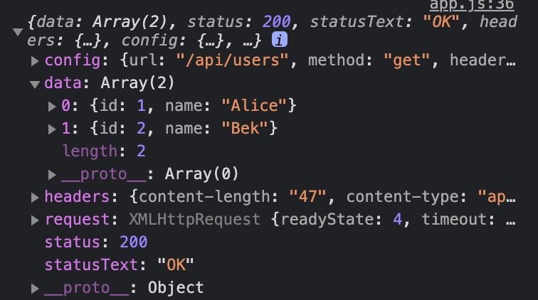 이 api를 app.js에서 요청하고 받아와서 콘솔에 찍어보자