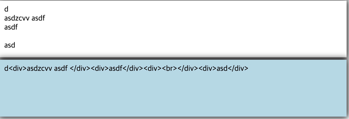 위의 네모의 텍스트를 innerHTML로 추출한 뒤 그 상태값을 그대로 렌더링한 결과를 밑에 나타내고 있다