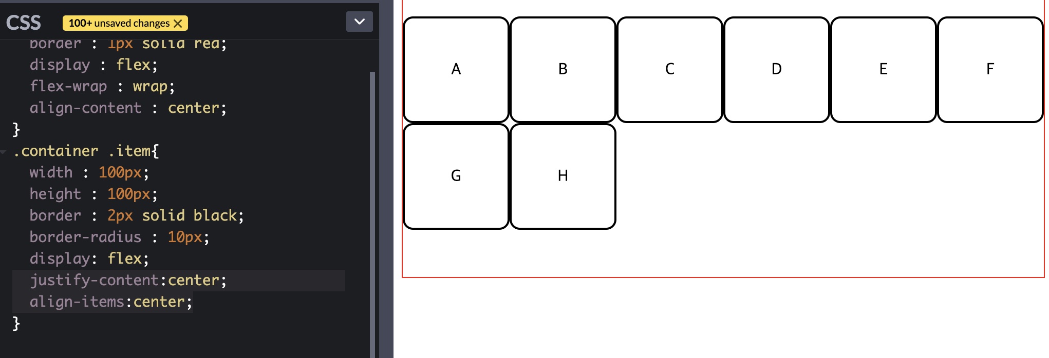 주 축을 기준으로 가운데 정렬하기 위해선 justify-content를 교차 축을 가운데로 정렬하기 위해선 align-items를 썻듯이 똑같이 사용하면된다