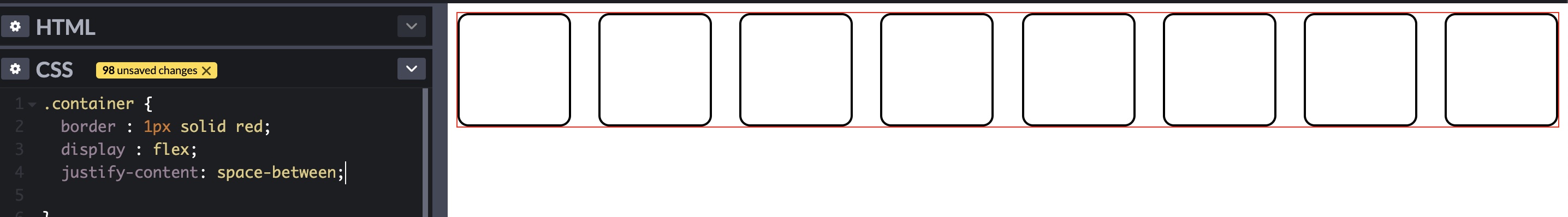 space-between: 첫 아이템은 시작점에 마지막 아이템은 끝 점에 하고 고르게 정렬