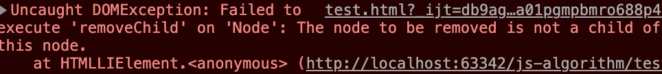 ul의 자식이 아닌 노드는 삭제할 수가 없다고 하는 에러인데 우리가 이벤트를 준 것은 li태그이지만 실제로 클릭시에 이벤트가 발생하는 엘리먼트는 바로 button이기 때문
