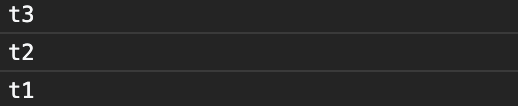 그리고 코드를 읽어나가며 함수 호출할 때 스택에 하나씩 담게 되는데 t1()을 호출한 뒤 t1()안의 t2()까지 호출한 뒤 함수들이 저장되어있는 스택의 모습