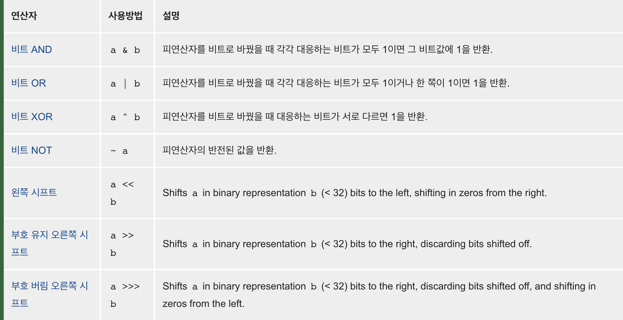 알고리즘을 풀다가 비트 연산자를 이용해서 푸는 것을 봤는데 매우 유용해 보여서 알아보게 된 이유가 된 연산자다