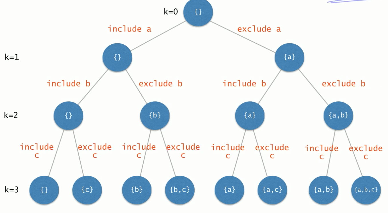 각 노드는 각 원소를 포함시킬지 시키지 않을지를 정한 경우의 수이다